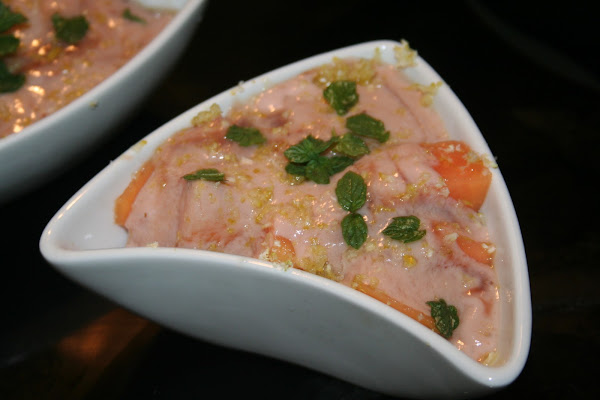 Rallamos el limón congelado (también puede ser piel de un limón sin congelar, aunque suelo tener limones en el congelador que van muy bien para aderezar platos), terminamos de decorar colocando hojitas de menta fresca sobre nuestro rico y fácil postre.