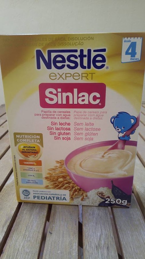 Hoy os quiero hablar de los cereales de Nestlé Sinlac, ya que dentro de un mes podemos introducirlos en la dieta de Chloe.