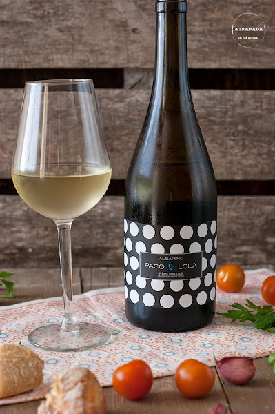 Y para acompañar las almejas ya os hablaba de que teníamos un blanco, de la D.O. Rias Baixas, Paco & Lola, un vino 100% Albariño. Un vino cuya nota de cata es la siguiente: " Fase visual: limpio, brillante de color, amarillo pajizo con destellos verdosos. Fase olfativa: nariz armoniosa y muy expresiva. Notas muy finas de fruta (cítricos, manzana verde, pera) con matices herbáceos (albahaca) sobre un fondo floral. Sorprendente intensidad aromática. Fase gustativa: fresco, amplio y sabroso. Notas de fruta (piña, manzana verde), con toques de cítricos refrescantes que prolongan su final. Forma un Dúo Divino con aperitivos, sushi, platos de pasta, pescados, arroces, carnes blancas y mariscos". Tengo que añadir que me encanta su etiqueta, me parece un vino muy elegante y fue el causante de que me enamorara de los albariños, que antes no eran santos de mi devoción. Su precio ronda los 12 o 13 euros en el mercado.