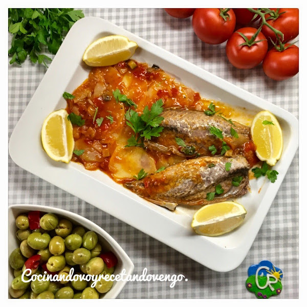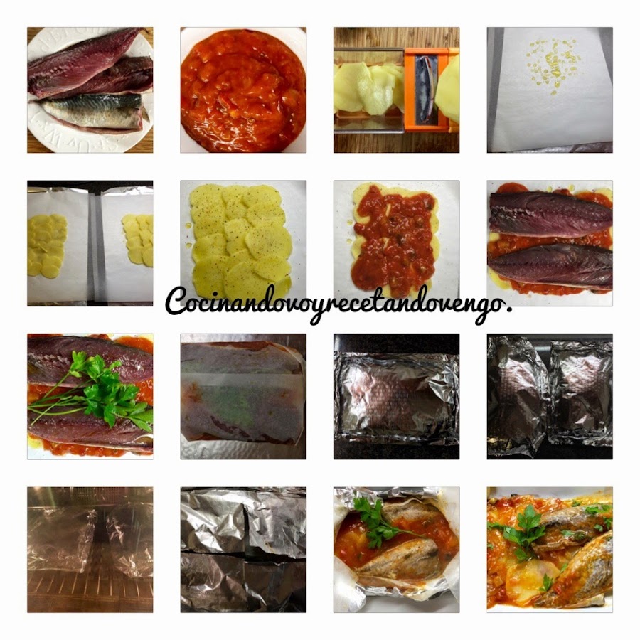 Hola a tod@s!! Hoy os traigo un papillote delicioso, el papillote es una técnica de cocinado muy fácil, limpia, saludable y rápida que consiste en cocinar alimentos envueltos herméticamente en el horno (con papel de aluminio o sulfurizado) y el calor hace que los alimentos se cocinen en su propios jugos debido al vapor que generan, suele hacerse con verduras y pescados que son alimentos de consistencias relativamente blanda que facilite su cocción en poco tiempo. Lo más fácil es hacer raciones individuales, por personas en paquetitos y servirlos muy calientes cuando salen del horno. Cuando veamos que los paquetitos se inflan o hinchan es que se está generando vapor y es cuando los alimentos se están cocinando. En esta ocasión la caballa junto con las patatas y el pisto es una combinación muy sabrosa y económica, estamos en temporada de este pescado y tenemos que disfrutarlo!!