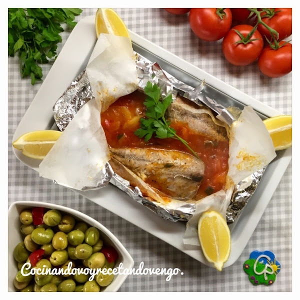 NOTA: Yo suelo usar papel de horno en contacto con los ingredientes y en el exterior papel de aluminio para que quede bien hermético y que el papel de plata no esté en contacto con los alimentos y sus jugos.