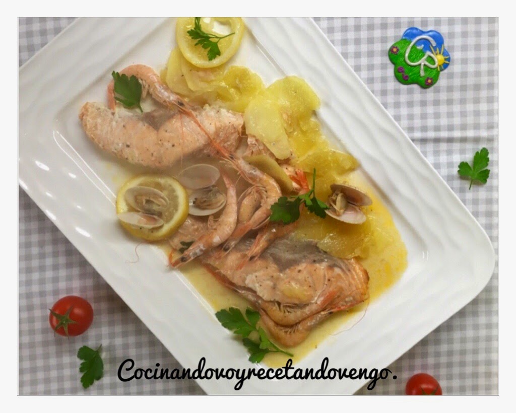 Las almejas se habrán abierto (si alguna queda cerrada, desecharla) y todo estará cocinado en su punto y con una jugosidad y aroma delicioso!!