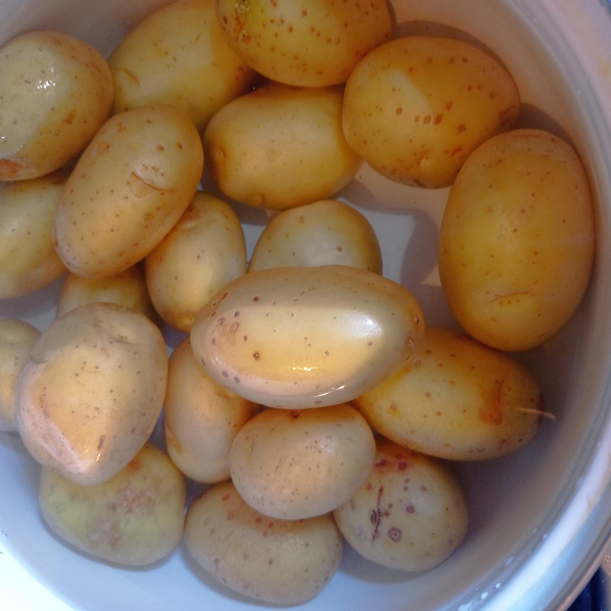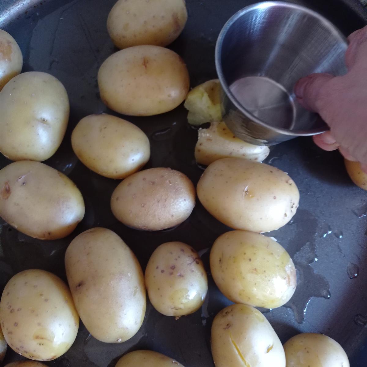 Agregar las papas con cascar y dejar que hiervan hasta que estén tiernas pero que no se desarmen