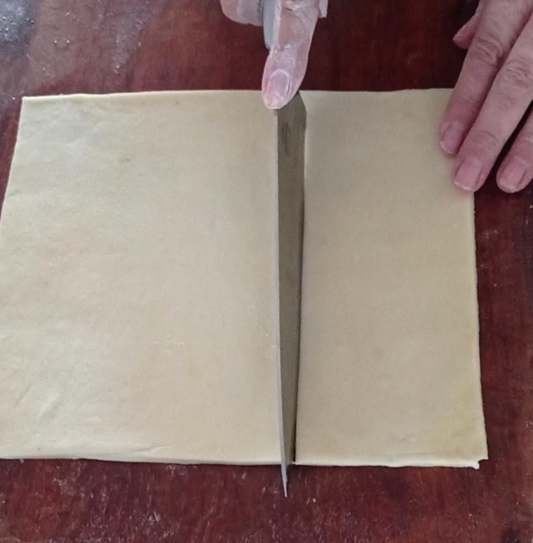 Aclaración: Doña Petrona le hace dobleces como la masa de hojaldre , 3 veces, llevando cada vez a la heladera, yo la usé sin hacer los dobleces para hacer estos paquetitos.