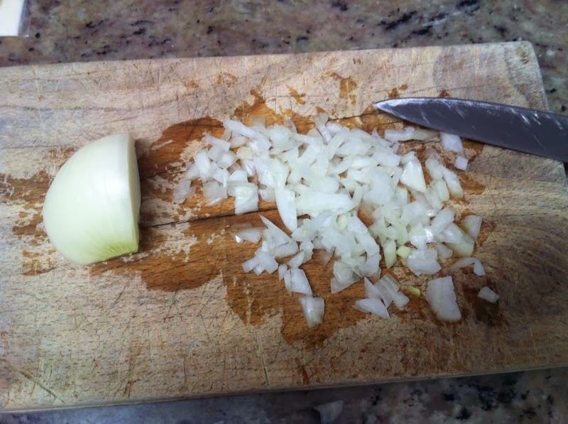 Empezaremos pelando la media cebolla y picándola muy fina.?
