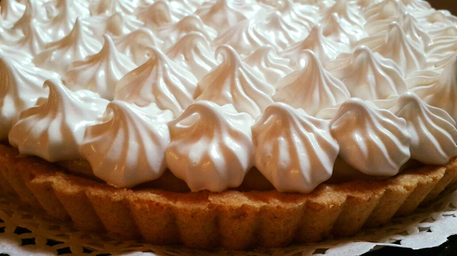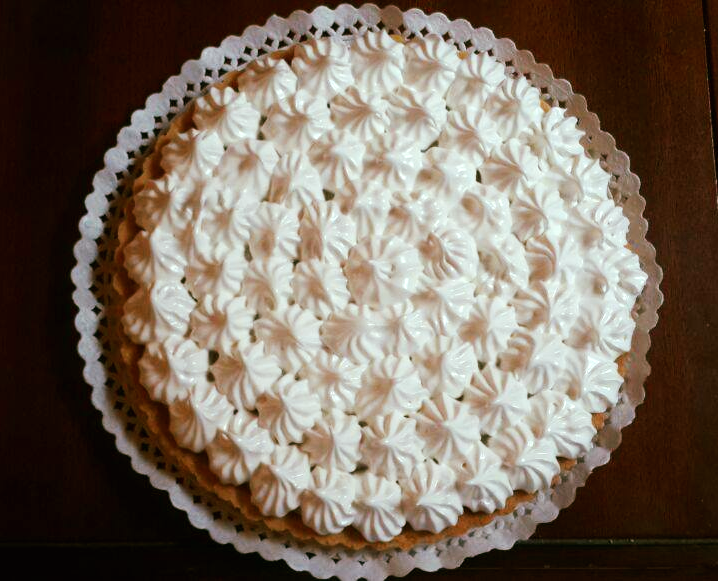 - Así en caliente como esta, la ponemos sobre la masa. Dejamos que enfríe para luego poner el merengue.