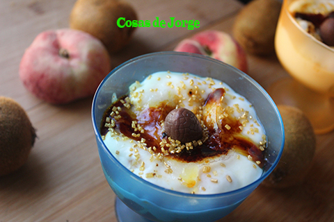 Repartimos entre ambas copas el yogur, cubriendo la fruta.