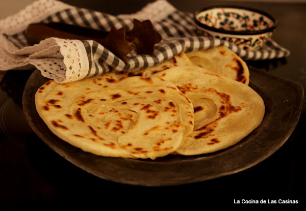 La Paratha es un pan indio, parecido al Naan que preparamos hace tiempo con mucho éxito ¿te acuerdas?. Es un pan un poco más hojaldrado que el anterior debido a los pliegues que realizas en su preparación y ghee o mantequilla clarificada, un ingrediente muy utilizado en India. Suele rellenarse yo no lo he hecho, te recomiendo acompañarlo con el Curry de Cordero que te enseñé aquí o con este rico Pollo Tikka Masala que te enseñé aquí, una delicia. Es un pan muy fácil y de preparación rápida, he intentado seguir los pasos de Priyanka que podéis ver aquí.