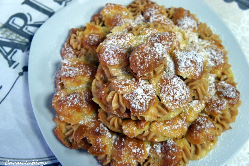 Como a mi la primera se me bajó pero los profiteroles no, se me ocurrió hacer la segunda rosca en forma de montoncitos para que no se me bajara.