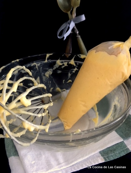 Introduce en una manga pastelera con una boquilla lisa.