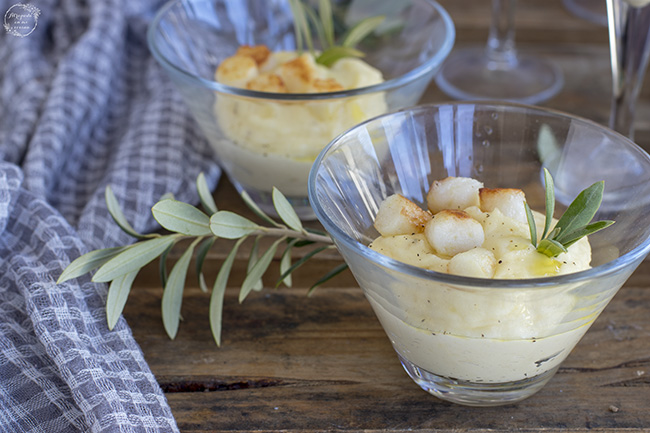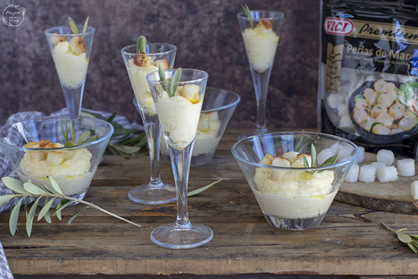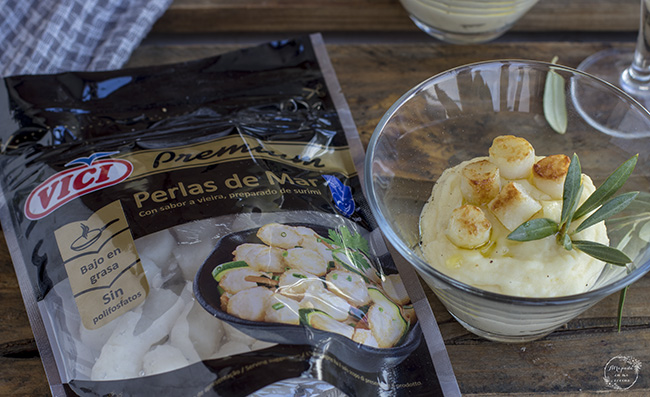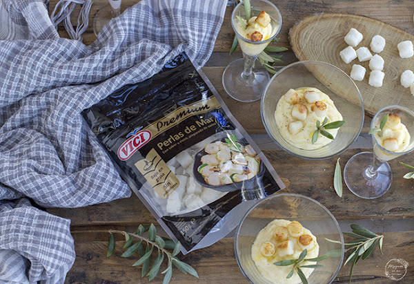 Como sabéis los que me seguís soy muy fan de las presentaciones individuales en la mesa, porque me parecen muy cómodas y elegantes. Además ahora está cada vez más de moda las cenas o comidas informales tipo bufé donde preparar todo bien presentadito y que cada comensal se sirva a su gusto y en la cantidad que desee. Por ello mi propuesta para este mes para VIČI ha sido la de vasitos con cremoso de patata con las perlas de mar que saben a vieira por encima. Simplemente es espectacular en el paladar. Estas perlas se han convertido en un verdadero vicio para mi y soy capaz de tomarlas tanto crudas como cocinadas.