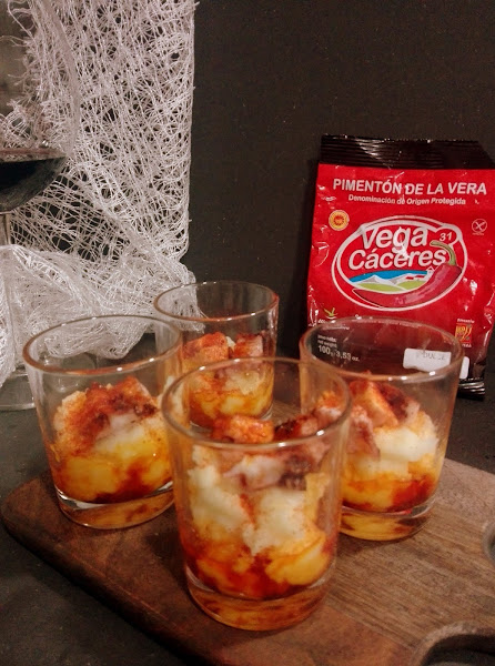 Lo suelo usar a diario en las comidas que requiere,claro está,como en estos vasitos de Parmentier con pulpo qué no puede faltar un buen pimentón dulce o si os gusta picante.