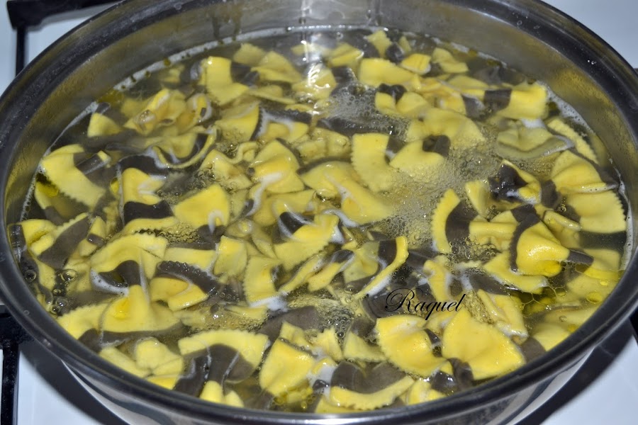 Hervir la pasta como de costumbre con sal y un chorrito de aceite, el tiempo que marca el fabricante y escurrimos.
