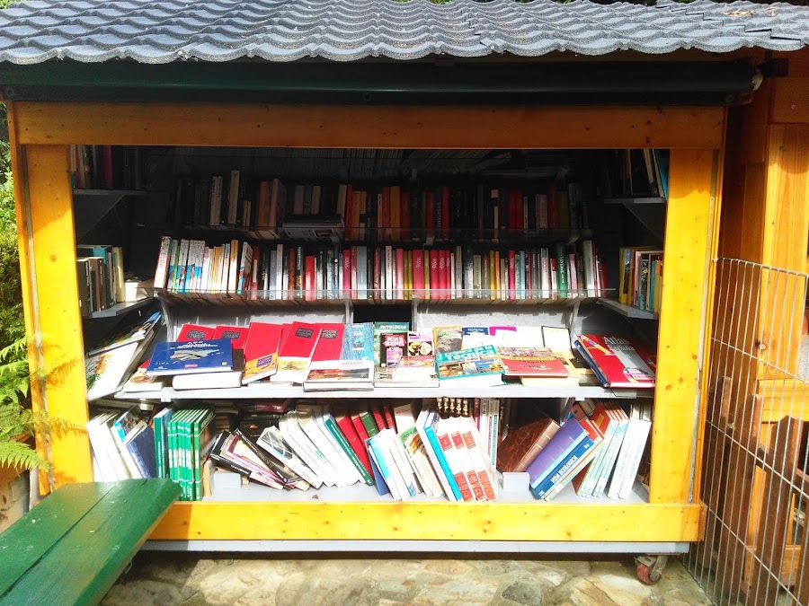 Llegamos justo a tiempo para la visita guiada de la mañana, esperamos unos minutos en las instalaciones y mientras echamos un ojo a los alrededores, me llamó la atención y me gustó mucho la idea de unas casetas donde había libros. Nos explicaron que dichos libros son donados por personas que quieren colaborar con la causa, se pueden comprar a un módico precio (1, 2 €) y si los devuelves te dan la mitad de lo que has pagado para poder llevarte otro