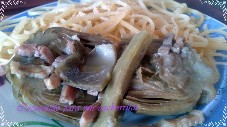 Verónica de "Cocinando para mis Cachorritos" tiene en su blog una receta de "Alcachofas de la Abuela Goyi", la receta es de la abuela de los cachorritos, madre de Verónica.