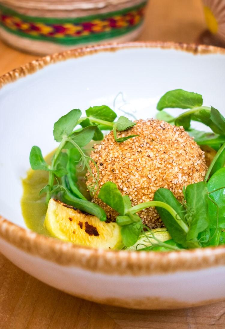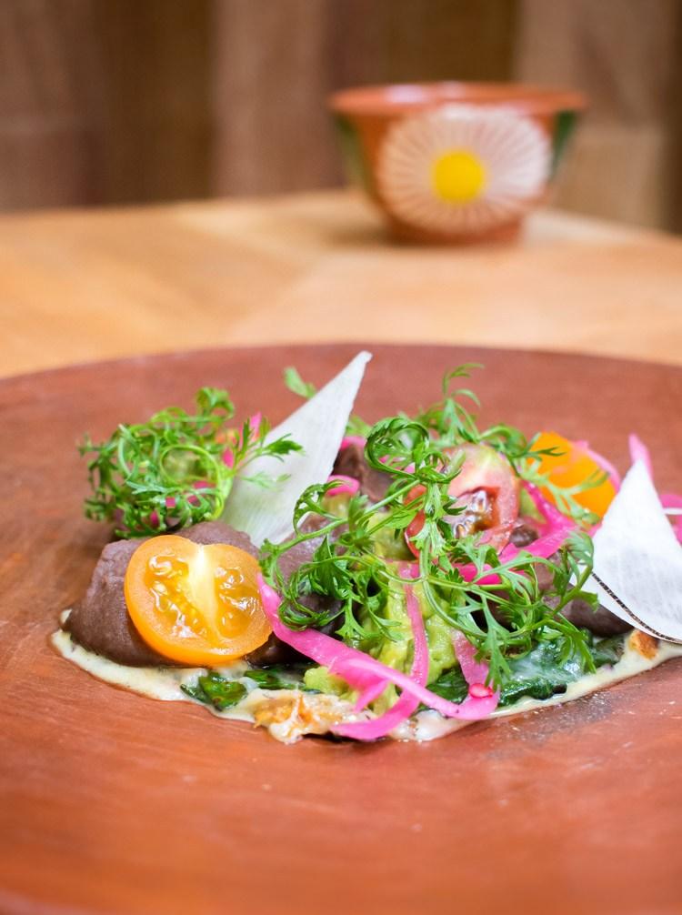 Albóndiga de huauzontle y quesillo en mole verde Ésta pasión por el maíz hace de Pasillo de Humo un restaurante para vivir una experiencia muy mexicana, y tal vez por eso ya se ha colocado en listas internacionales de lugares must para visitar en la ciudad. Es un lugar ameno para visitar en cualquiera de los tiempos: para el desayuno, unos buenos chilaquiles con chapulines, para la comida, una picaña en mole negro, y para la cena, un ceviche con chile de agua acompañado de un mezcal.