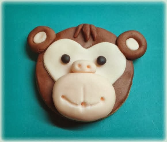 Paso 1: Estirar el fondant marrón con la ayuda de un rodillo y cortar con el mismo cortador que usamos para la forma de nuestra galleta redonda. Pegar el círculo de fondant sobre la galleta (podéis usar pegamento comestible o con un poquito de agua será suficiente)