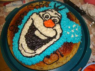 Para realizar a Olaf, decoramos la superficie del pastel y como verán está un poco esponjado y brillante, debido a la cocción y resulta un poco más complicado hacerlo así, así es que les recomiendo que mejor decoren la base de pastel que está más plana.