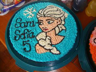 A veces uno tiene que improvisar y en este caso se me terminó el betún, así es que con todos los restos que quedaban de los dos pasteles se me ocurrió ir cambiándole de tonos, al fin que Olaf es muy feliz y adora el verano, jeje, y pues un poco de color no estaba de más... este fue el resultado final...