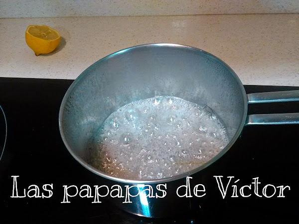 Poner un cazo al fuego con el azucar, el agua y las gotas de limon.
