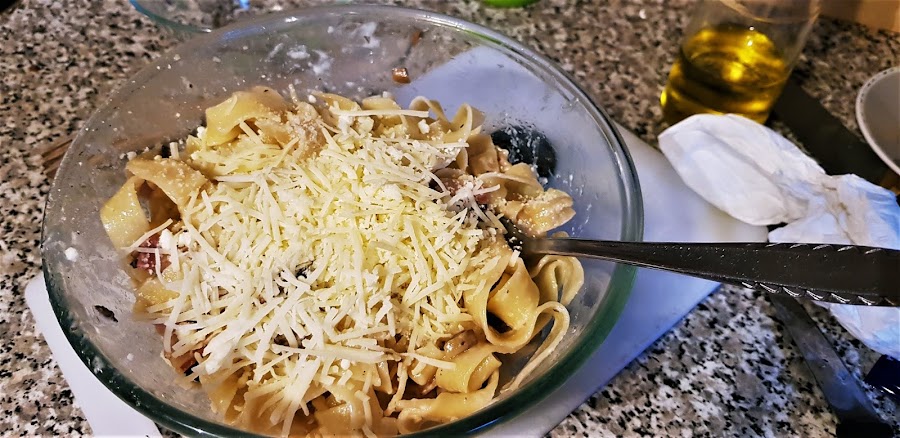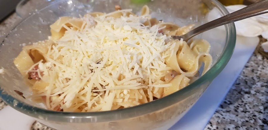 Así prepara su deliciosa pasta a la carbonara. Es su estilo. Es su manera y así le gusta a él.