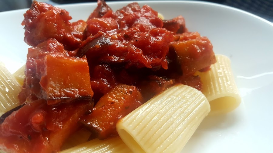 Así que cuando vi esta pasta con berenjenas dejé de comerme más la cabeza y a por ella que me lancé. Y os aseguro que está absolutamente deliciosa.