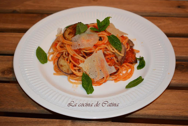 La pasta alla Norma es un plato clásico siciliano que todo el mundo consume desde niño en la isla. Me gusta mucho esta versión en particular porque las berenjenas se cortan a tiras en vez de en dados, y por algún motivo parece que le dan un sabor diferente. El añadirle orégano mientras se sofríen las berenjenas va de maravilla. El toque final de este plato en Sicilia se consigue con la ricotta salada, que quizás sea difícil encontrarla por lo que podemos sustituirla por parmesano o pecorino. Sicilia es un paraíso gastronómico, dominado por la presencia del mar. La isla de Sicilia se encuentra separada de Italia por el estrecho de Messina, y está bañada por las aguas de tres mares, por lo que el ambiente marinero está muy presente en el modo de vida de los sicilianos.