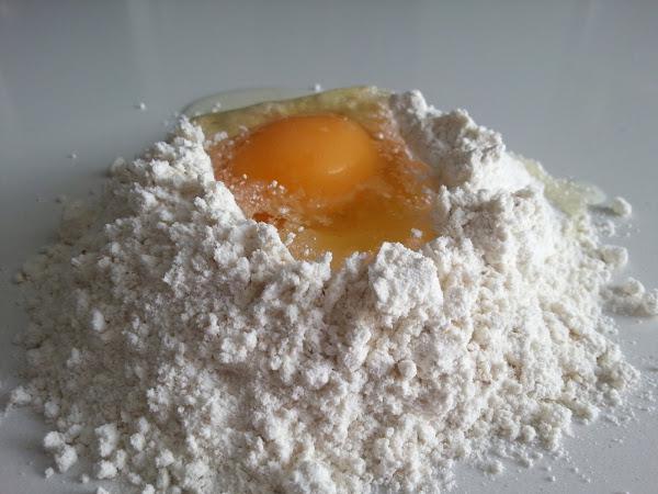 1. - Hacemos un pequeño volcán con la harina, haciendo un hueco en el centro para el huevo.