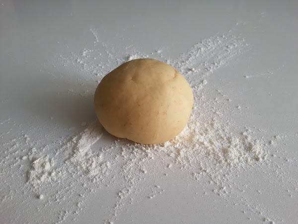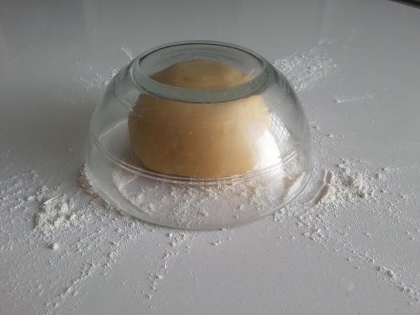 4. - Le damos forma de una bola y lo tapamos con un cuenco de cristal, y dejamos reposar una media hora, podéis dejarlo más, pero no más de tres horas, para que no se seque demasiado.