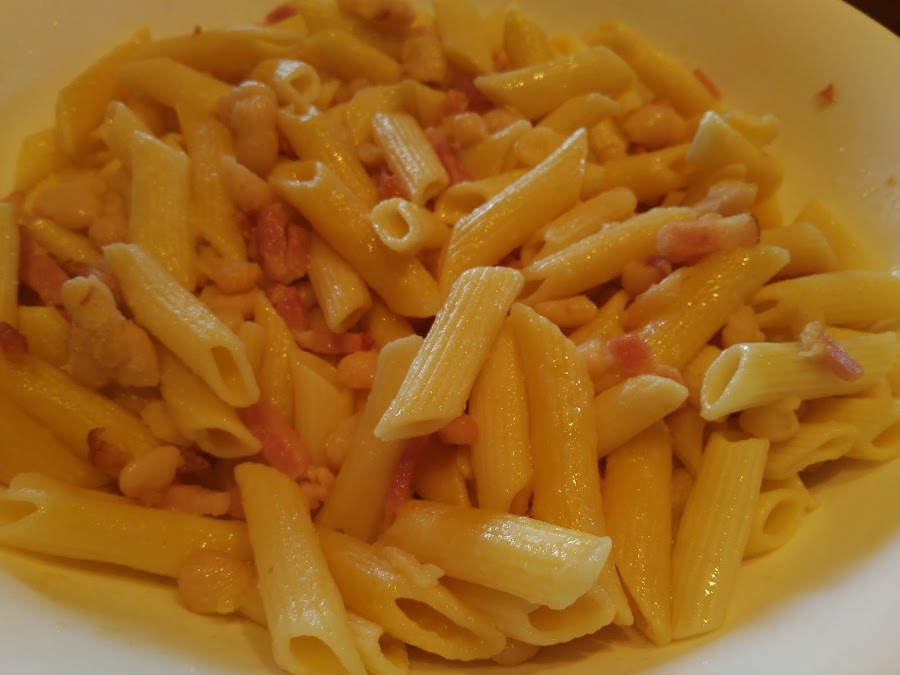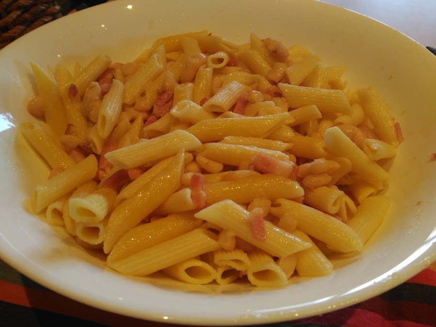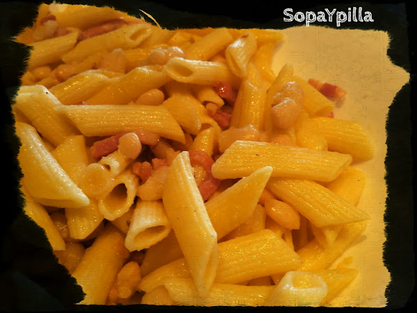 Siiii.... mezclar la pasta con legumbres es delicioso!! ya lo probé con una sopita, y ahora con pasta corta. Podéis utilizar codos, espirales, macarrones, lo que tengáis...y qué niño dice que no a un plato de macarrones, aunque lleve alubias? ;)