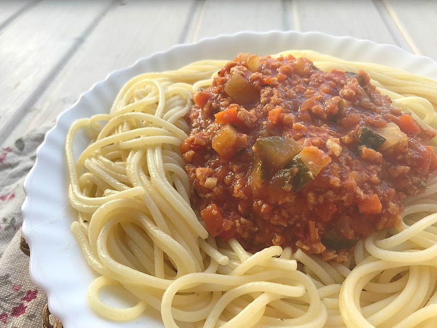 Pasta con boloñesa vegana
