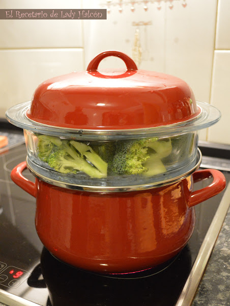 Así que con esta idea nos pusimos a preparar un plato de pasta ligero y sabroso para probar la olla a vapor que nos envió Vitrinor-Magefesa. Pasta y brócoli era una buena combinación para probarla por que nos permitía preparar las dos cosas a la vez... Pero cuando pusimos las dos cosas en la olla, pese a que quedaba muy bonita, lo vimos demasiado... como decirlo... ¿soso? no sé jajaja la cuestión es que le faltaba algo...