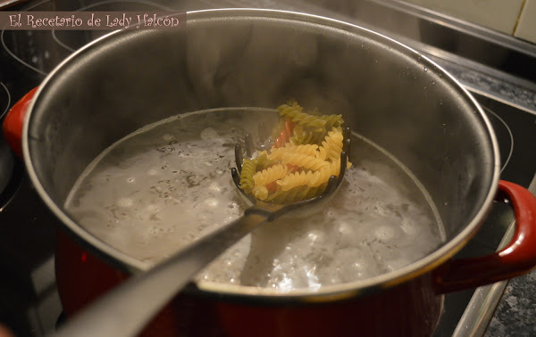 Cuece la pasta siguiendo las indicaciones del paquete. En nuestro caso, como no era fresca, fueron unos 8 minutos aproximadamente.