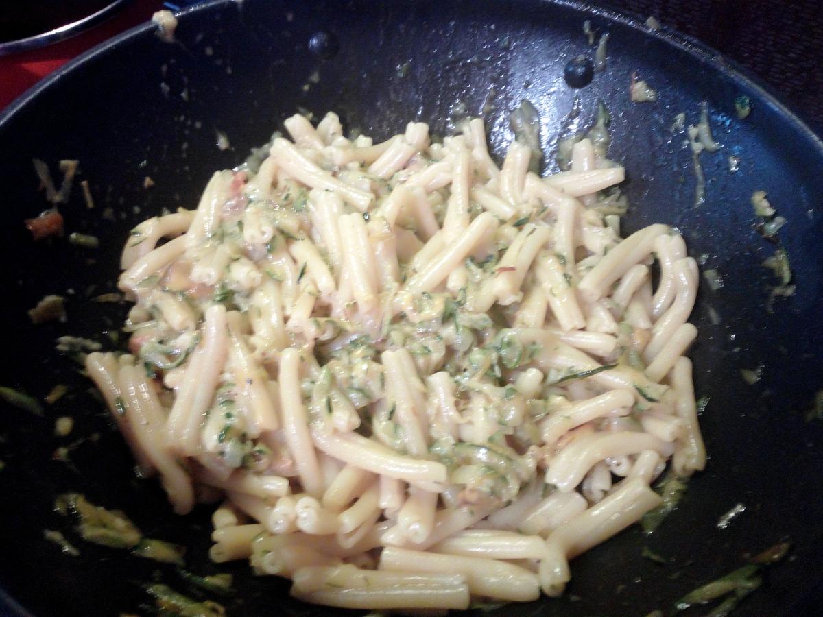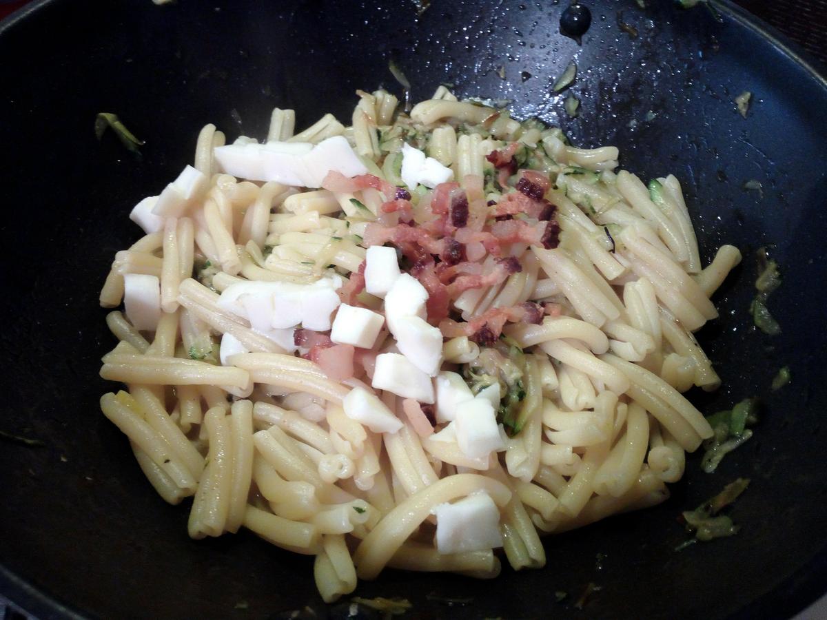 La pasta con calabacín panceta y queso provola, es un primer plato rápido de preparar, completo y muy sabroso. Una variante sería, al final, gratinar al horno, para un efecto aún más rico (más recetas con calabacín)