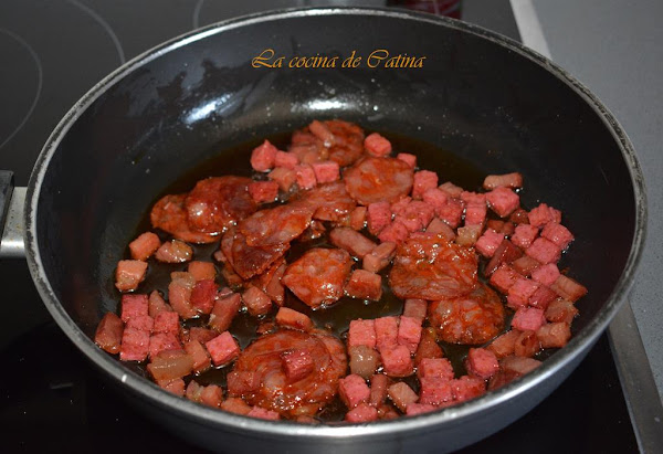 Mientras se hace la pasta, ponemos el aceite en una sartén, cuando esté caliente, ponemos las carnes frías a dorar.