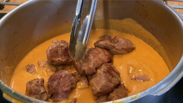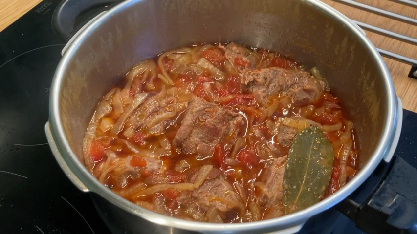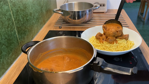 Destapa, saca la carne, reduce la salsa y tritúrala.