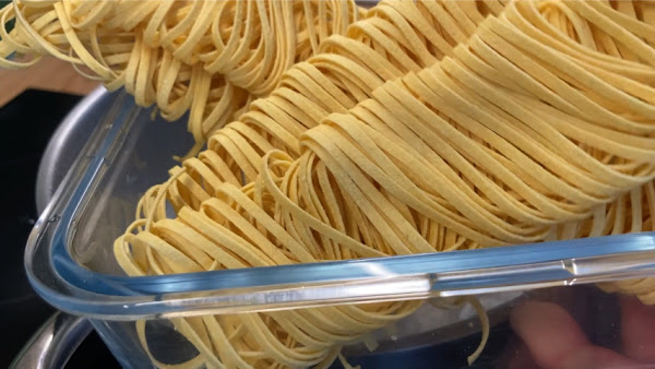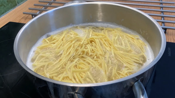 Pasta -puedes usar cualquier pasta corta o larga pero yo he utilizado fettuccine al huevo-