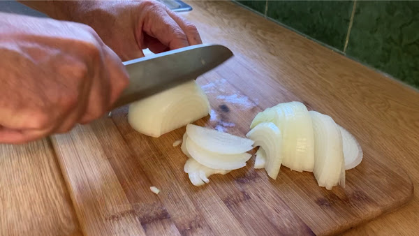 Pela y corta la cebolla en juliana