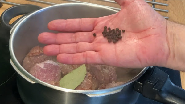 Añade el laurel, la pimienta y la cerveza.