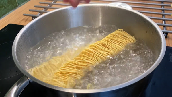 Cuece la pasta en agua hirviendo -bien sazonada- el tiempo necesario.
