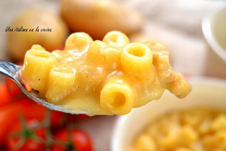 Cuanto me gusta esta pasta con patatas y provola. Es toda una delicia, queda muy cremosa y sabrosa. Esta es una receta italiana tradicional de Napoles y te aviso que es mejor que no la pruebes si estas a dieta porque querrás repetir!La pasta con patatas y provola, como toda receta tradicional, es una receta que se prepara a ojo. En mi receta encontrarás todas las cantidades medidas pero cuando la hagas te puedes dejar llevar por lo que tengas. Tradicionalmente hay dos formas de servir esta pasta. Una es más cremosa como la mia. La otra es más caldosa, la patata queda más entera y es más en plan menestra. A mi me chifla tal cual la preparo, es una delicia. Llevo tiempo haciéndola así y es como más nos gusta.