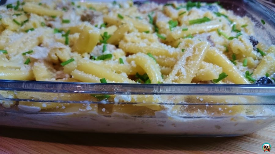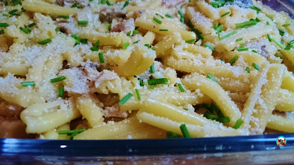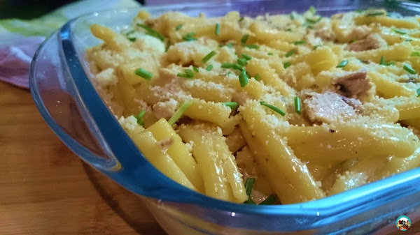 Consejo: puedes cambiar el queso parmesano por queso para gratinar y gratinas la pasta unos 10 minutos en el horno o microondas.