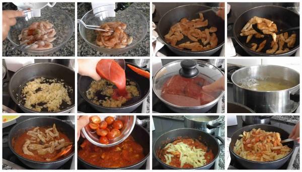 Elaboración de la pasta con pollo y tomate muy fácil: