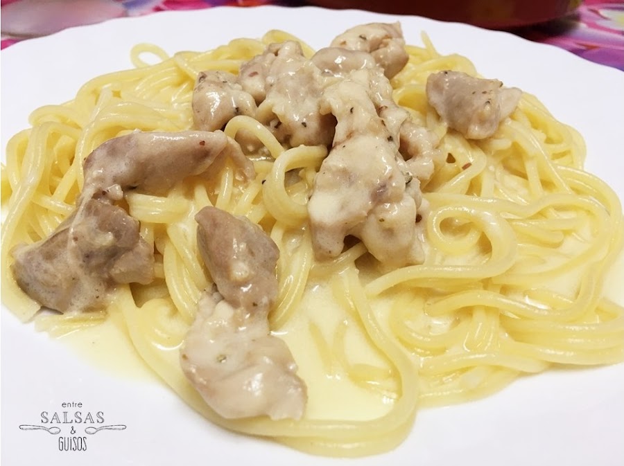 400 gr. muslo o contramuslo de pollo a tiras (la pechuga se deshace más, por eso usé esta)