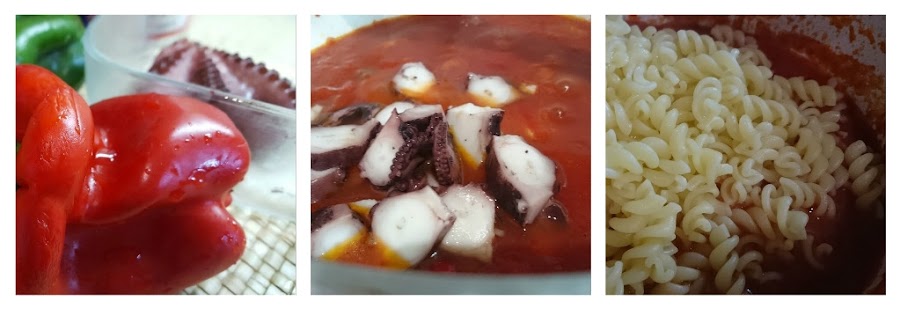 Pasta con pulpo, elaboración: