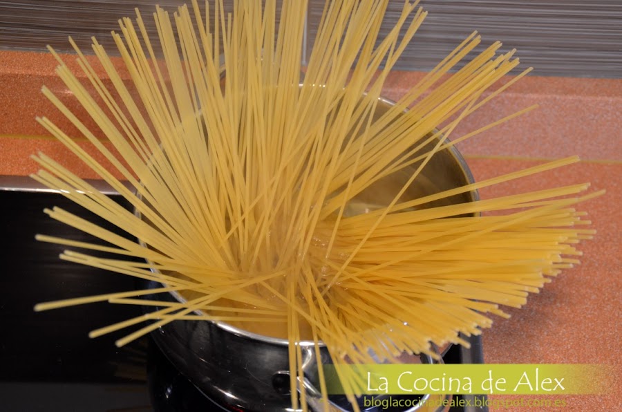 Lo primero que haremos será cocer la pasta en abundante agua hirviendo con sal, durante el tiempo que ponga en el paquete para que este al dente. En nuestro caso 8 minutos.