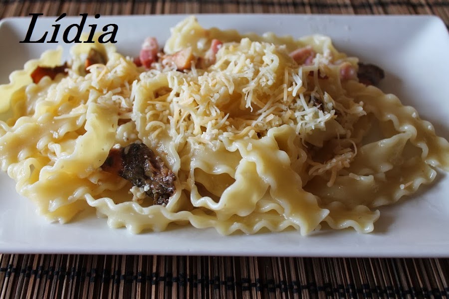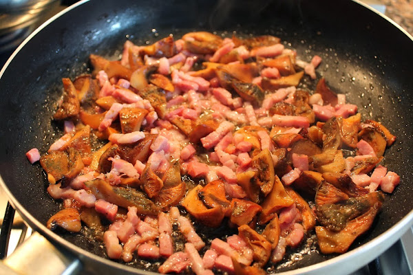 He preparado con ellos una receta de pasta, acompañada de bacon , los rovellons y queso fresco batido.