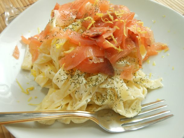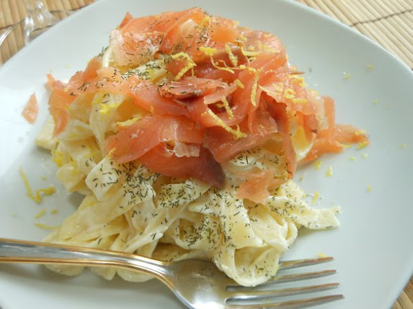 Sirve la pasta en los platos y espolvorea con un poco de eneldo.