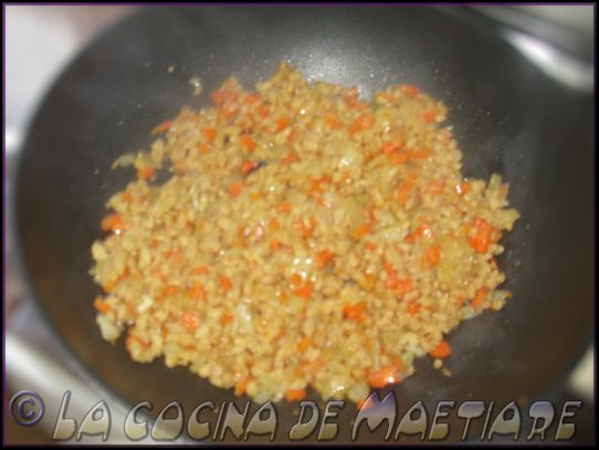 Pero en éste caso he cambiado algunas cosas como la marca de soja texturizada( comprada en Consum) y la cantidad de soja utilizada. Lo cierto es que la soja texturizada del Mercadona no me acababa de gustar.