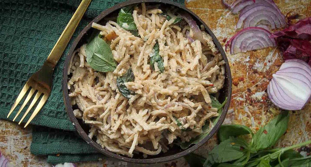 Cremosa pasta carbonara vegana